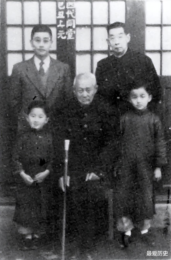 ▲晚年的萨镇冰与家人。图源:网络